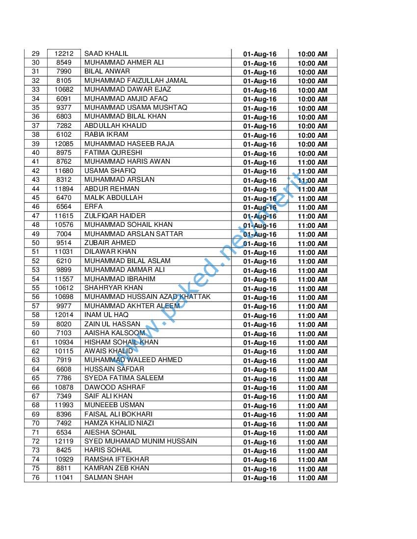 Bahria University Islamabad - Merit List August 2016 - LLB