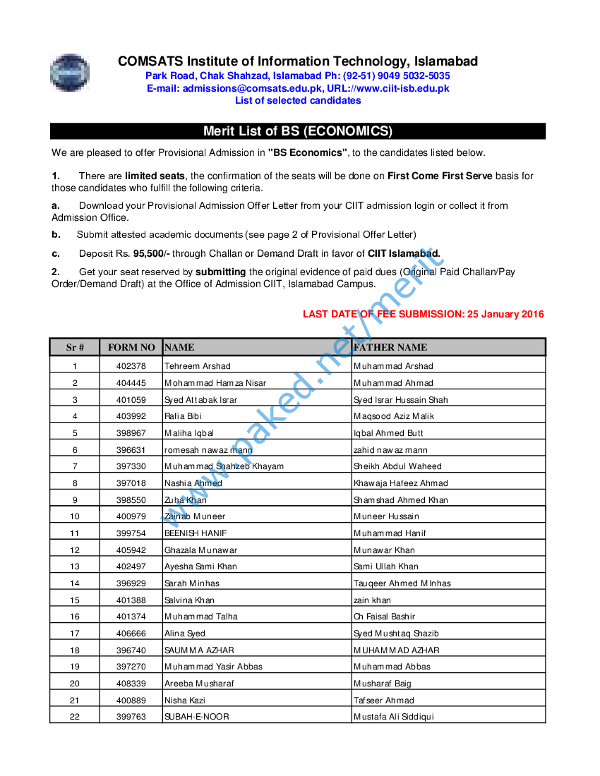 Note: These are archived merit lists for reference purposes only. The criteria for merit lists vary from institution to institution. A university or college may display more than one merit list for an academic session. Usually, candidates on the waiting lists are transferred to the open merit lists. You should always contact the relevant college or university for up-to-date merit lists and admission status.