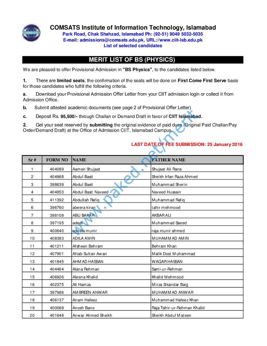Note: These are archived merit lists for reference purposes only. The criteria for merit lists vary from institution to institution. A university or college may display more than one merit list for an academic session. Usually, candidates on the waiting lists are transferred to the open merit lists. You should always contact the relevant college or university for up-to-date merit lists and admission status.