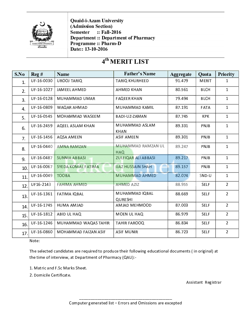 Note: These are archived merit lists for reference purposes only. The criteria for merit lists vary from institution to institution. A university or college may display more than one merit list for an academic session. Usually, candidates on the waiting lists are transferred to the open merit lists. You should always contact the relevant college or university for up-to-date merit lists and admission status.