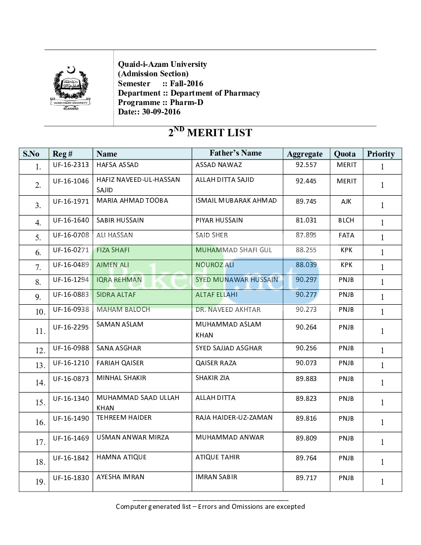 Note: These are archived merit lists for reference purposes only. The criteria for merit lists vary from institution to institution. A university or college may display more than one merit list for an academic session. Usually, candidates on the waiting lists are transferred to the open merit lists. You should always contact the relevant college or university for up-to-date merit lists and admission status.