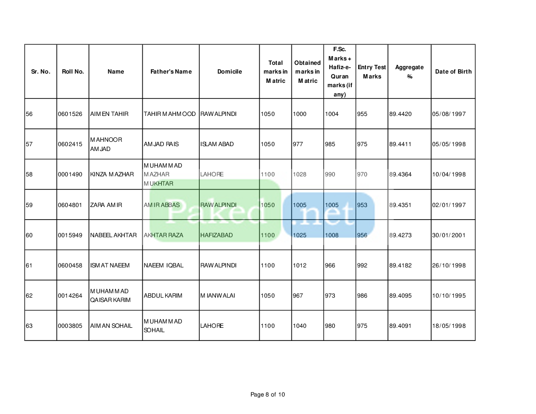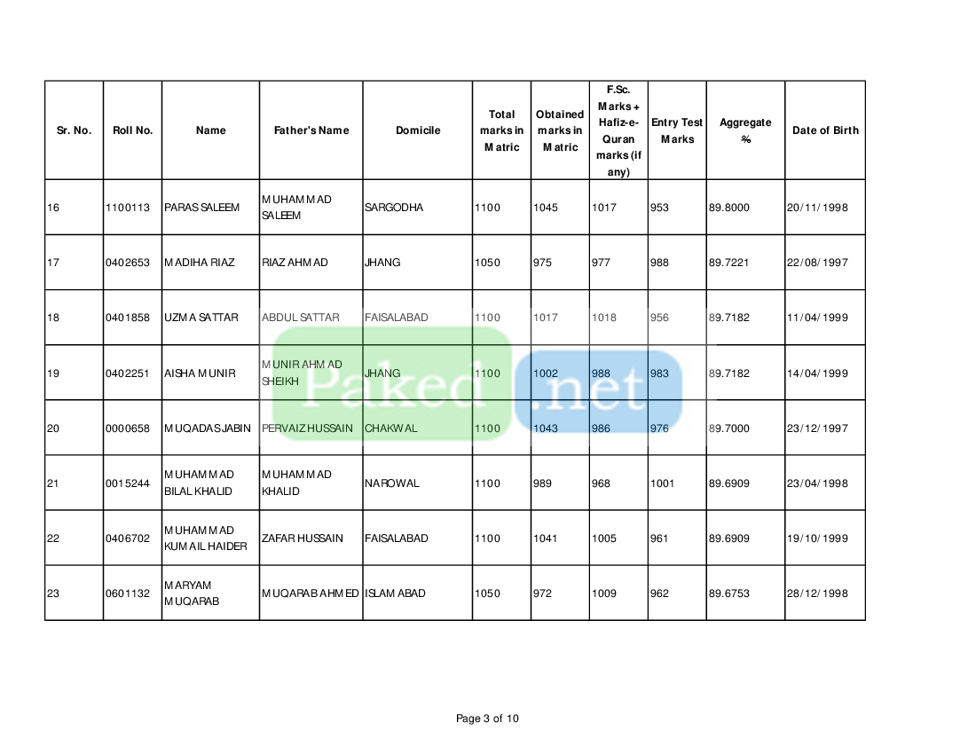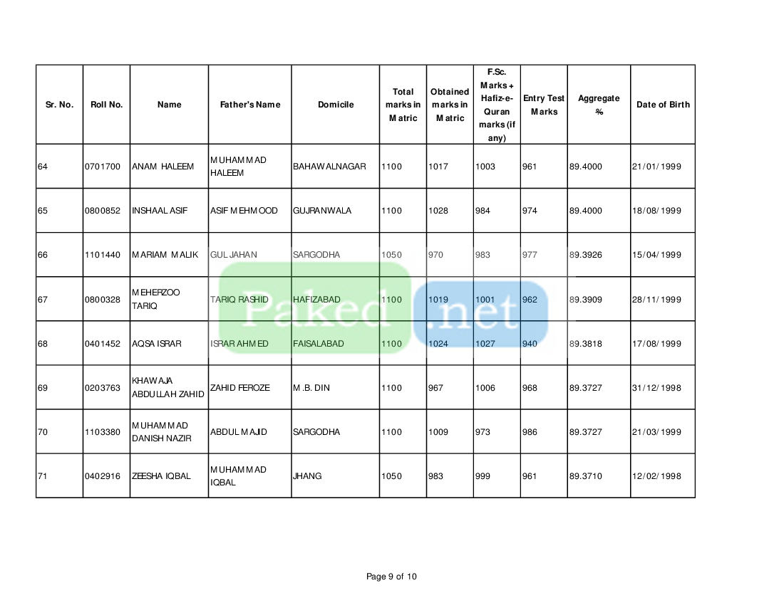 Note: These are archived merit lists for reference purposes only. The criteria for merit lists vary from institution to institution. A university or college may display more than one merit list for an academic session. Usually, candidates on the waiting lists are transferred to the open merit lists. You should always contact the relevant college or university for up-to-date merit lists and admission status.
